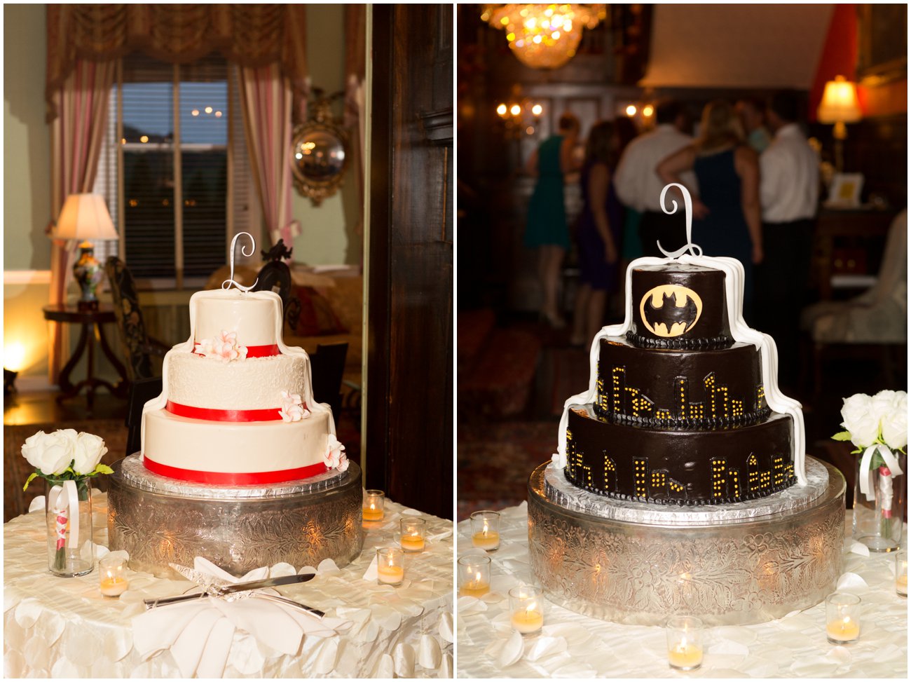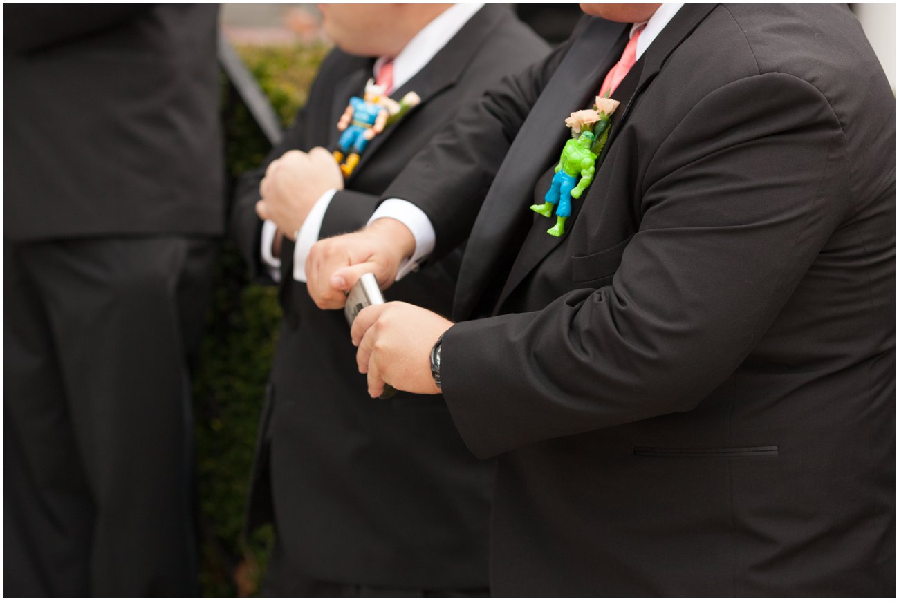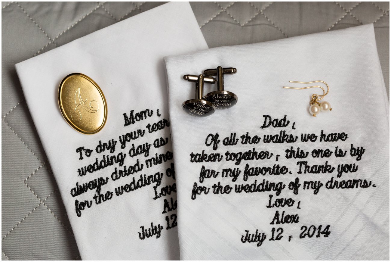 Alex + Mark are such a sweet couple and I am so thrilled that they found me when they did. Their wedding was an incredible mix of elegance and fun with a hint of Superhero flare. The groom has an incredible love of Batman so little subtle hits of this could be seen everywhere… and of course some not so subtle Batman features popped up everywhere as well. I think my favorite was their cake! A gorgeous classic pink and white cake with a dark side twist… as you walked around the table you could see that that entire back half of the cake was Batman and a Gotham City theme. LOVE IT! Alex and her bridesmaids were so much fun to be with all day long. There were many shared laughs and tears as Alex prepared to walk down the aisle on the arm of her father. Every detail of this wedding was well thought out from the cuff links she gave her father, the handkerchiefs she gave her parents and the coke that Mark gave her with a sweet little love note. Their exchange of letters to one another was one of the most heartfelt moments I have seen. Simply beautiful hearing their words as they each waited to see one another at the altar. I hope you all enjoy this little preview of their day and again to the happy couple, thank you! Thank you for having me document such an important day in the beginning of your new journey together as Husband & Wife!!! XOXO – J