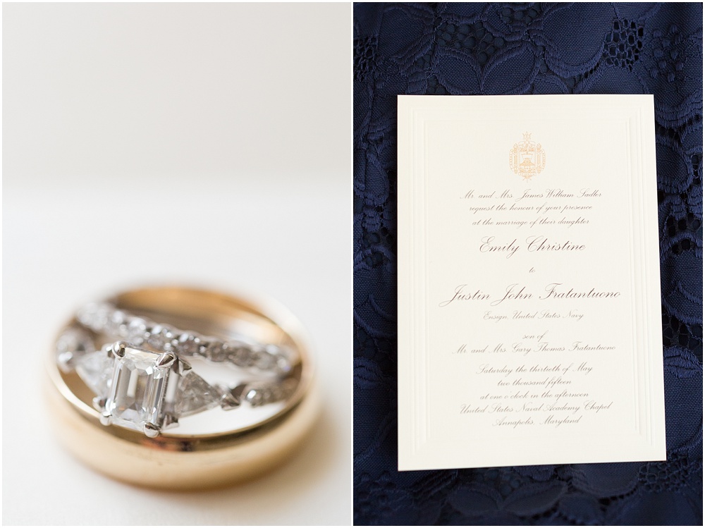 Emily and Justin were married at the United States Naval Academy shortly after Justin’s graduation. What an exciting time for these two, right! E+J were high school sweethearts and stuck by one another’s side through college and the rigorous schedule of the USNA. They have proven to all of us that love is much stronger that any other obstacle. The second I walked in Emily’s family home the day of her wedding I could just tell that this day would be full of emotion, love and only the closest people to the couple and their families. Her mom was so welcoming, her friends were absolutely the sweetest and Emily was so calm and peaceful all morning as she got ready to her new husband in their adventure together!