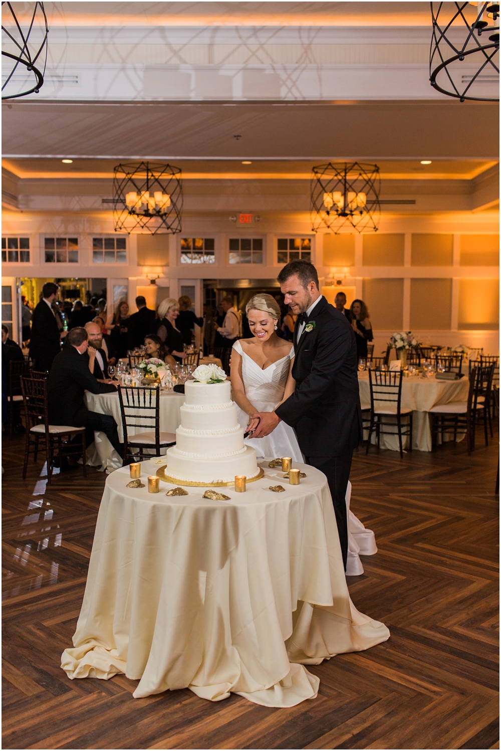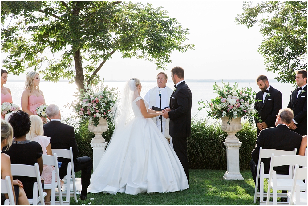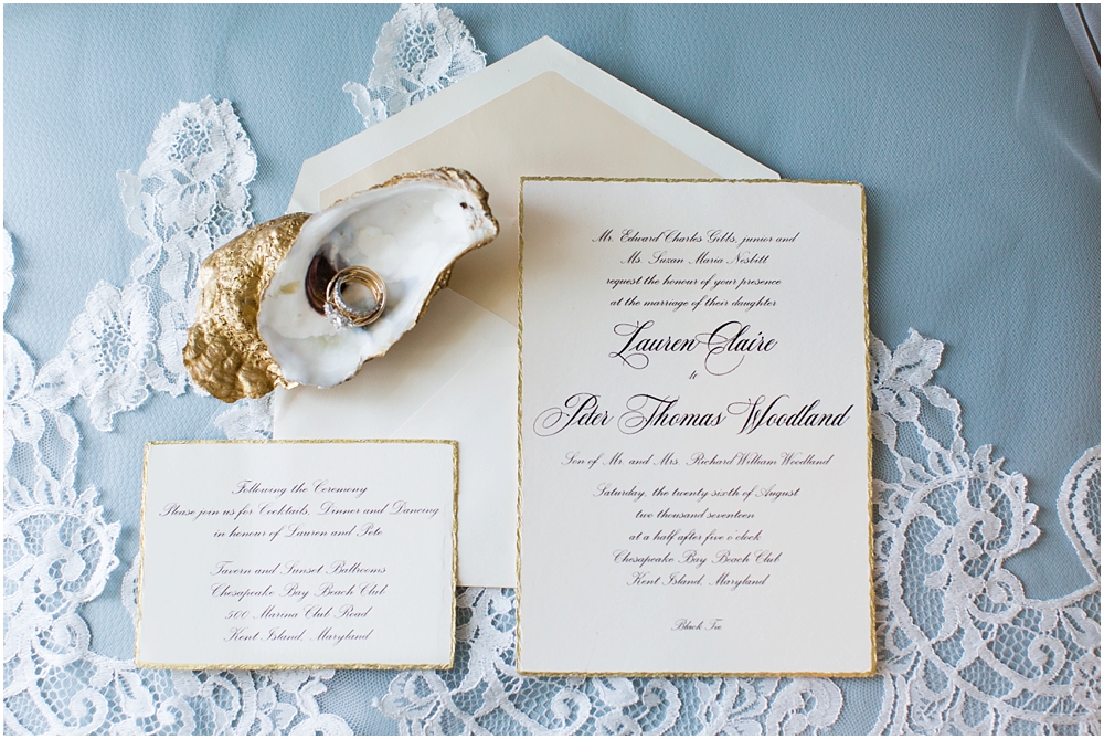 Lauren & Pete had the most perfect summer black tie wedding at the Chesapeake Bay Beach Club. The sun was shinning, the late summer humidity was no where to be found, the air was filled with a slight summer breeze and everyone was so relaxed and full of laughter. Lauren worked tirelessly to make sure every details was perfect and boy did she succeed. Every detail down to the 200 hand painted oyster shells were simply stunning.